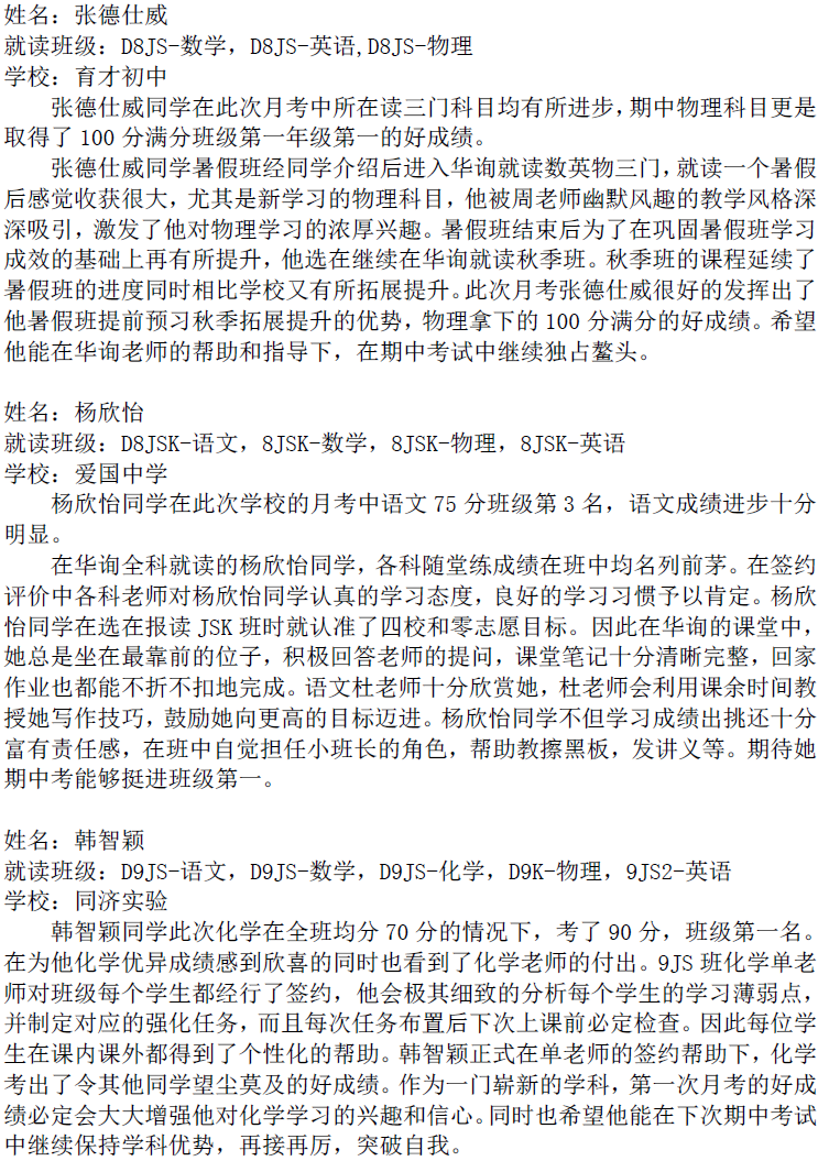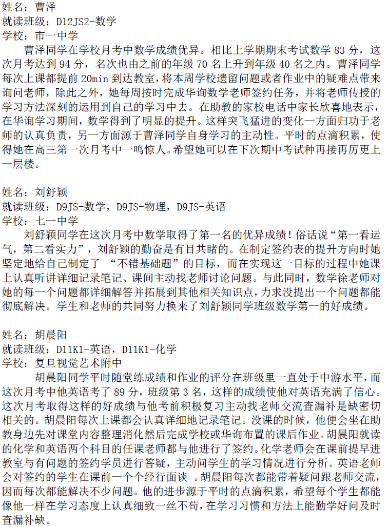 華詢教育階段成績展--第一次月考(東海篇)